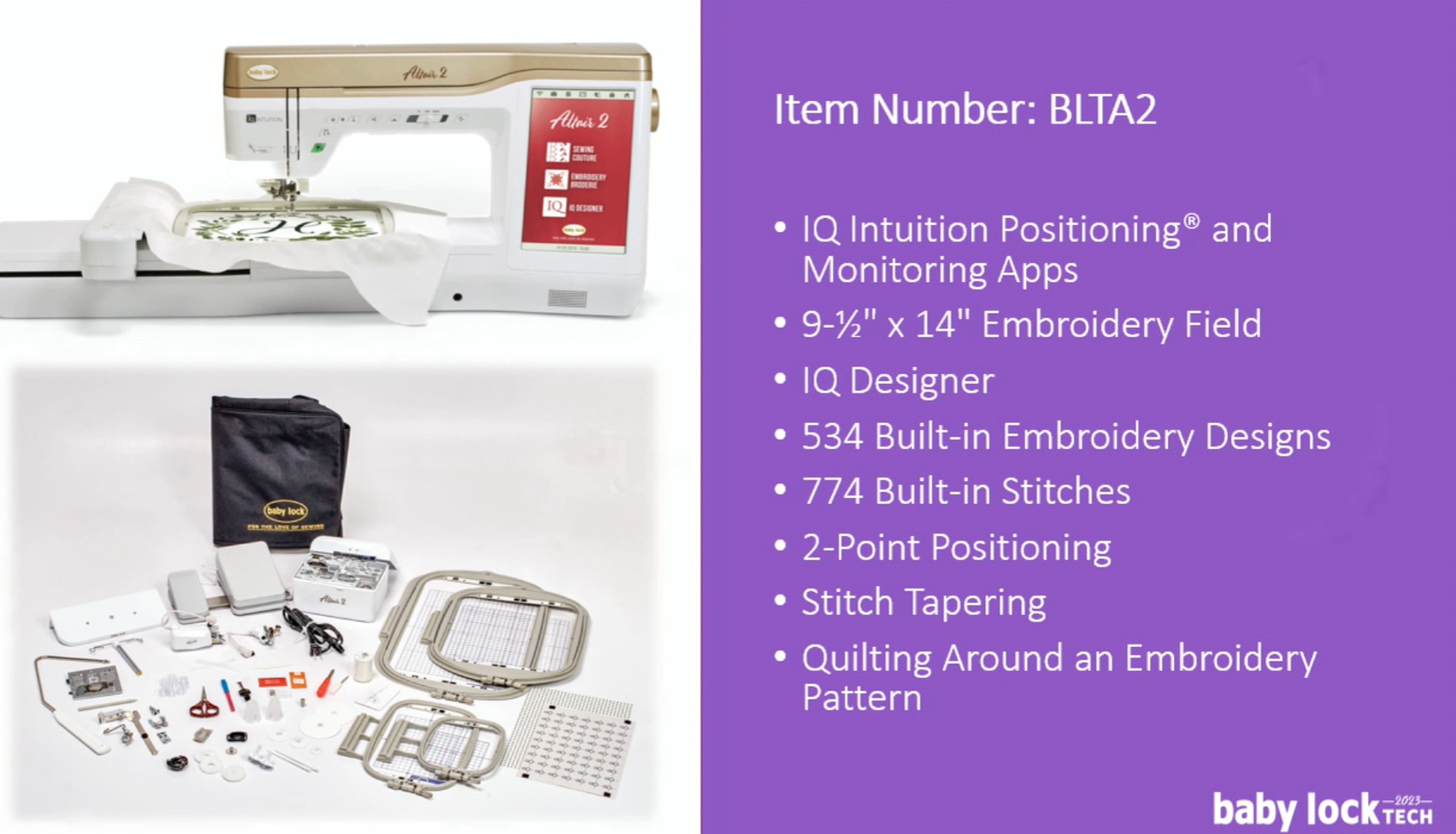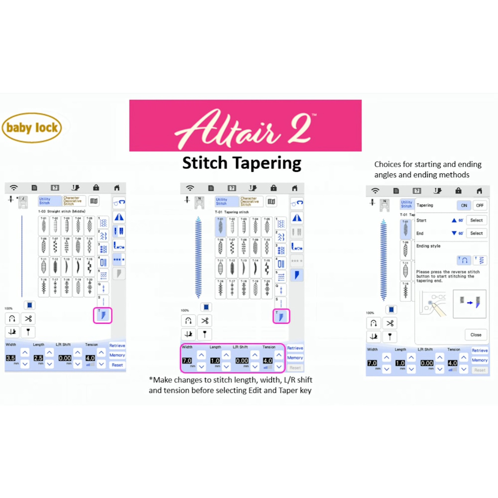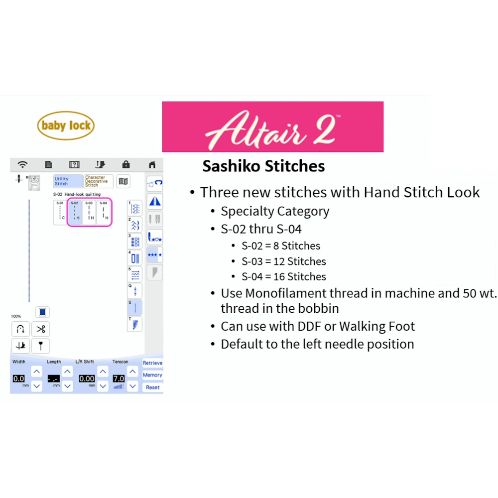 The Baby Lock Altair 2 machine features include: