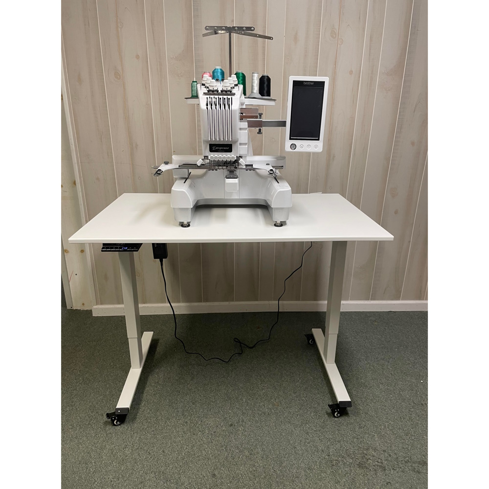 The Single Tier Adjustable Quilting Table is perfect for all your sewing needs with its spacious 30” x 48” tabletop and dual electric motors with adjustable height. This table can hold up to 225lbs, making it safe and sturdy for your machine and notions. With a touch of a button, you can adjust the height to fit your comfort while working on your projects. It adjusts from 27” to 47” (before adding the casters). The Single Tier Adjustable Quilting Table adjusts to make working on any project comfortable, whether you prefer to sit or stand while working. Another great feature of the Electric Lift Table is the casters/gliders.