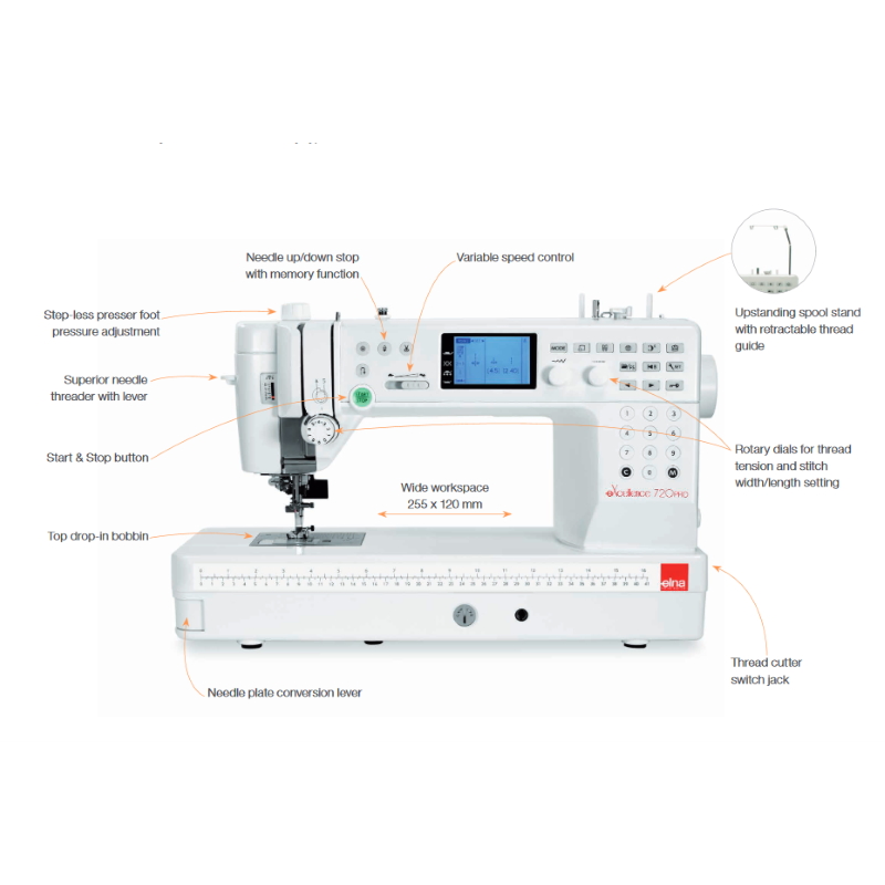 Major Features of the Elna Excellence 720 Pro Sewing Machine