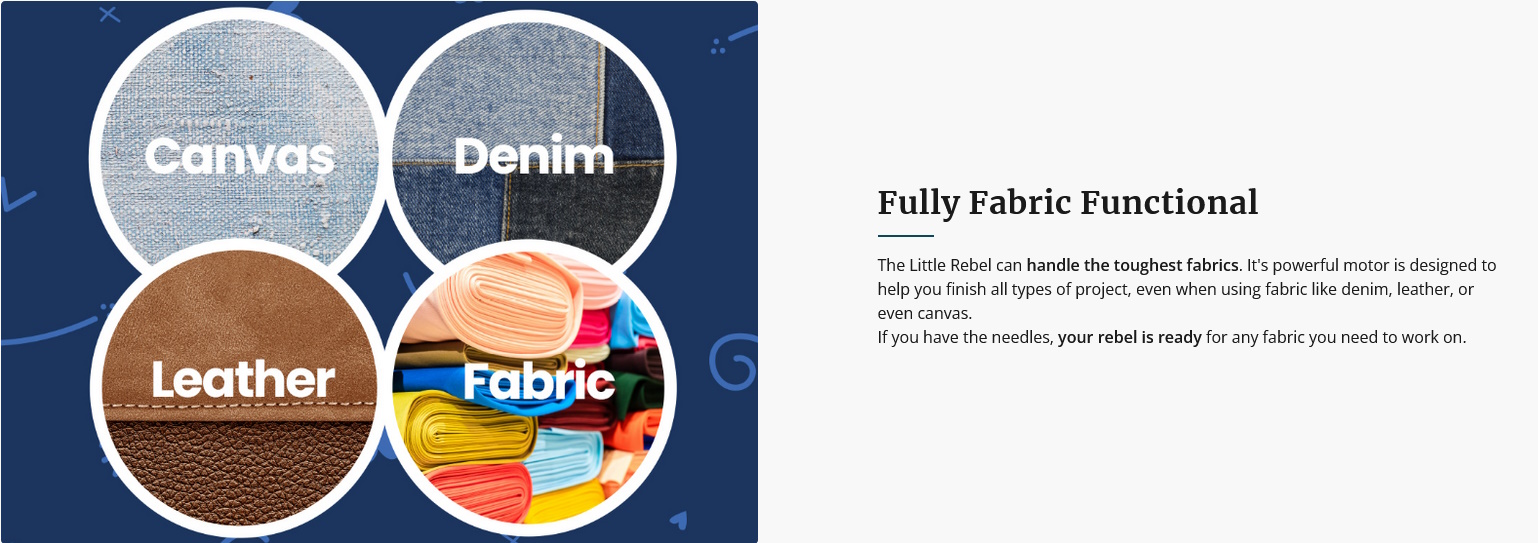 With a motor that can sew at 1600 stitches per minute and the strength to power through any material you need, there's nothing holding you back from reaching your creative dreams.