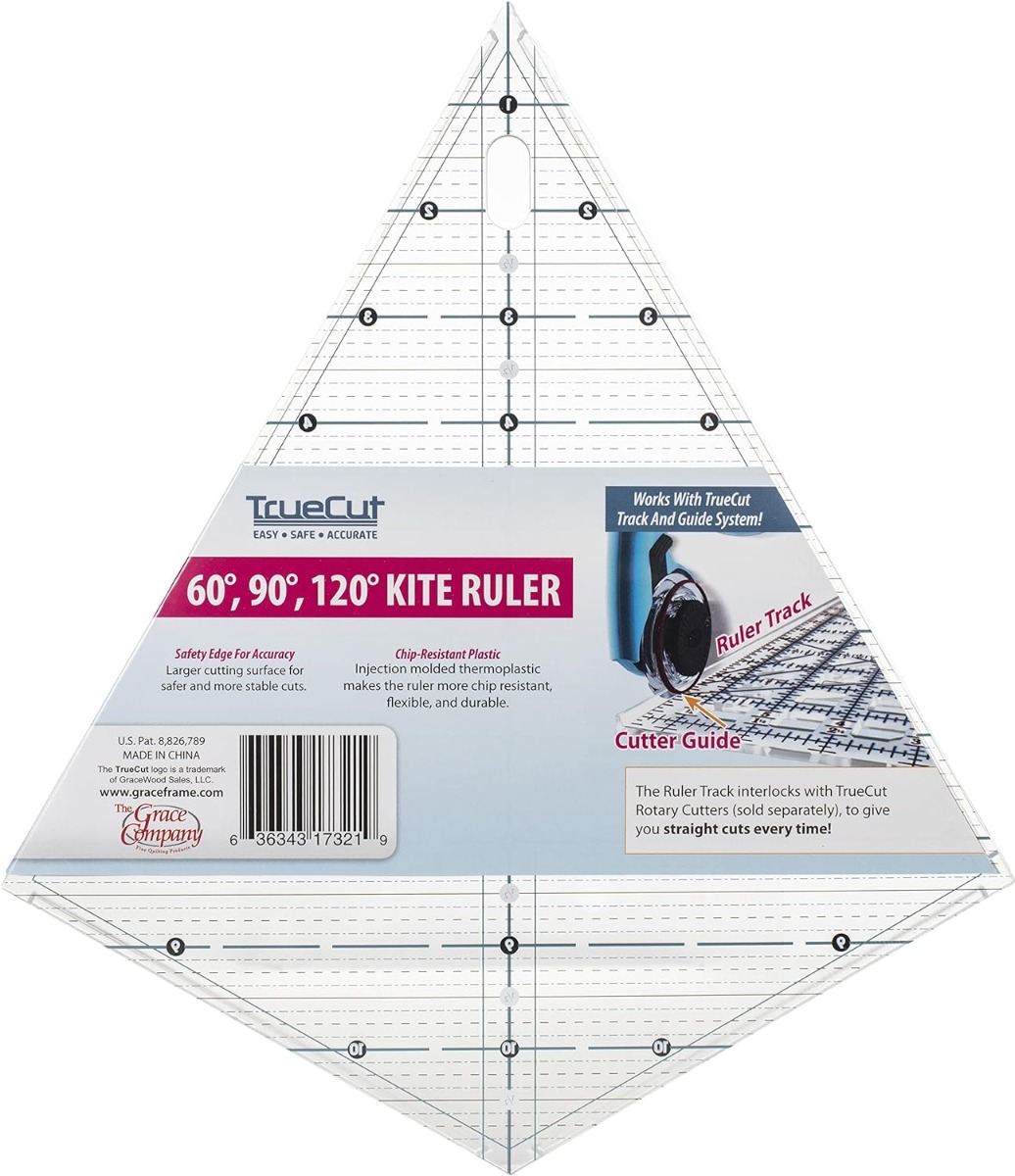 Kite Ruler: This ruler is great for almost any small project and shape. It cuts triangles, diamonds, and patterns with 60 or 90 degree angles.