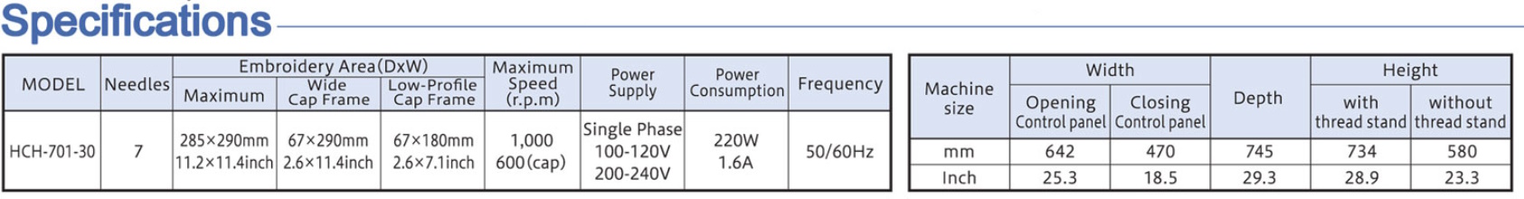 Features of the Happy Japan HCH-701-30TTC Semi Commercial Multi Needle Embroidery Machine