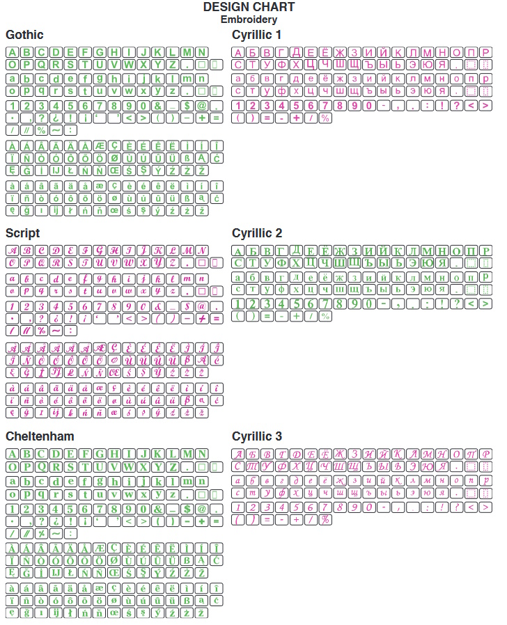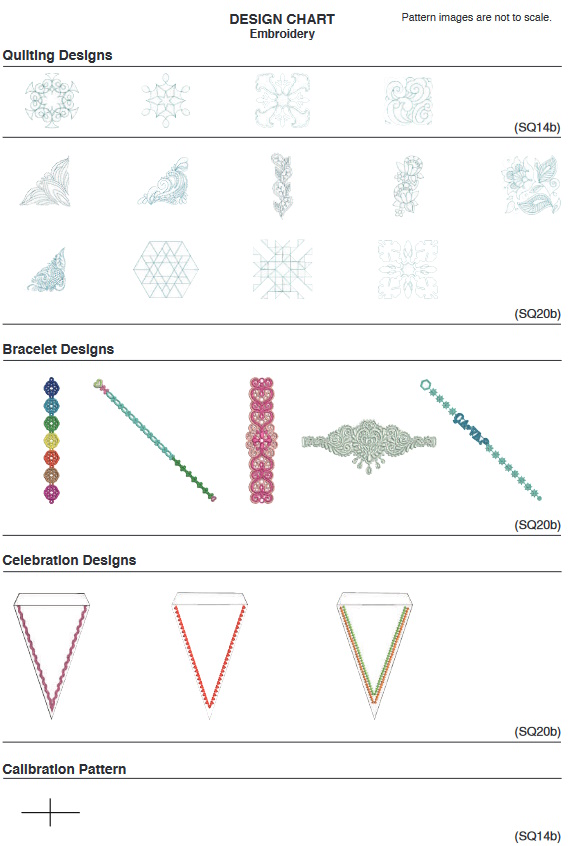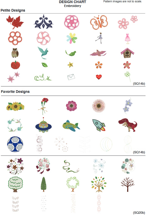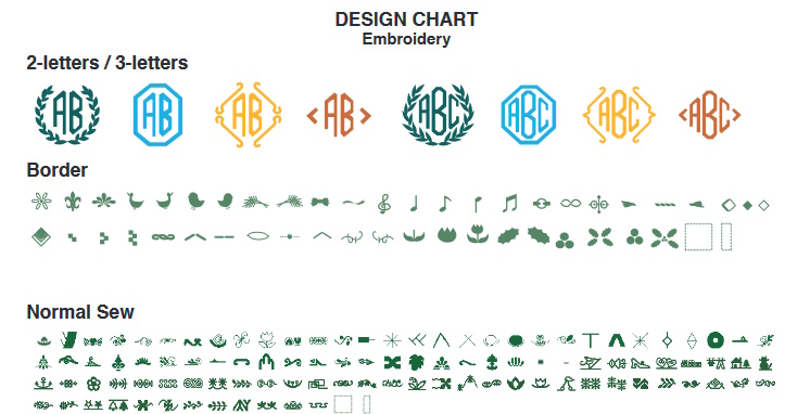 - On-screen editing functions include enlarge/ reduce, rotate, flip, drag and drop, arc, combine, copy and paste, grouping, corner layout, single color sewing, zoom